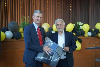 Zum Ende des Schuljahres im Juli konnte der 1. Vorsitzende des Fördervereins der Wölfersheimer Schulen Thomas Gerlach im Rahmen der Abschlussfeiern der Singbergschule in der Wetterauhalle mit dem neuen stellvertretenden Schulleiter Thorsten Rohde das 600. Mitglied im Förderverein mit einem kleinen Geschenk begrüßen. Herr Rohde war im vergangenen Jahr für die Direktorin Renate Schäfer an die Singbergschule gekommen, die in den Ruhestand versetzt wurde. Er war Ende 2021 sofort dem Förderverein beigetreten. Wegen der Pandemie konnte die Ehrung erst jetzt vor großem Publikum durchgeführt werden. Thomas Gerlach bedankte sich für den Beitritt des neuen Mitglieds und betonte, dass es zur guten Tradition gehört, dass die kompletten Schulleitungsteams beider Wölfersheimer Schulen im Förderverein vertreten sind und vertrauensvoll mit dem Vorstand zusammenarbeiten. Die inzwischen hohe Mitgliederzahl sei Bestätigung aber auch Anspruch und Auftrag für die zukünftige Arbeit des Vereins. Seit der Gründung im Jahr 1988 unterstütze man auf vielfältige Weise die Arbeit der beiden Wölfersheimer Schulen, die jährliche Budgets erhalten, die den jeweiligen Schülerzahlen entsprechen. Man brauche für die anspruchsvolle und intensive Förderung von Projekten, Veranstaltungen und Unterrichtsgegenständen hohe Mitgliederzahlen, um über die Mitgliedsbeiträge entsprechende Mittel an die Schulen geben zu können, betonte Thomas Gerlach. Bei 1750 Schülerinnen und Schülern an der Singbergschule und an der Jim-Knopf-Grundschule stecke man sich weiterhin Ziele zur Erhöhung der Mitgliederzahlen. Abschließend erklärte Thomas Gerlach, dass der Verbleib im Förderverein auch wichtig sei, nachdem das Kind die Schule verlassen habe, um das große Bildungsangebot vor Ort von der Vorklasse bis zum Abitur weiter auszubauen. In Wölfersheim können alle Schulabschlüsse absolviert werden! Thorsten Rohde bedankte sich für die Ehrung und versprach eine gute und intensive Zusammenarbeit mit dem Förderverein.