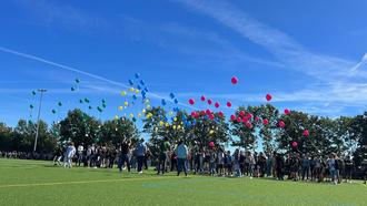 Dort wurden die Kinder mit Luftballons empfangen, die dann mit persönlichen Wünschen an die kommende Schulzeit gemeinsam in den Himmel entlassen wurden.