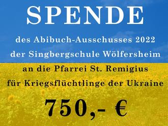 Krieg in der Ukraine mit tausenden Toten und Millionen Flüchtlingen – gegen diesen Irrsinn wollte der Abiturjahrgang 2022 der Singbergschule Wölfersheim ein Zeichen setzen. Und so entschlossen sich die Mitglieder des Abibuch-Ausschusses, deren Vorfahren einst selbst teilweise aus Ostpreußen und dem Sudetenland fliehen mussten, beim Verkauf des Abibuches um Spenden für die Ukraine zu bitten. Lehrkräfte, Eltern und Abiturienten ließen sich nicht lumpen, und so konnte das stolze Ergebnis von 750,- € eingebracht werden.