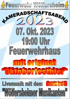 Kameradschaftsabend am Samstag, den 07. Oktober 2023!