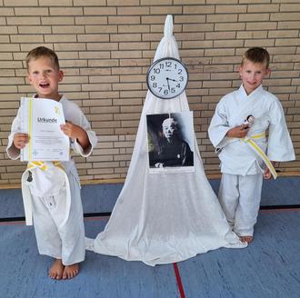 Zwei Jungs hatten vor einigen Wochen ihre Prüfung zum weiß-gelben Gürtel erfolgreich abgelegt.