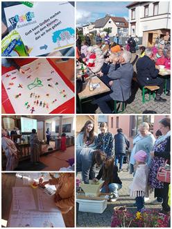 Alle Generationen waren dabei und konnten einen entspannten Vormittag erleben. Einen lebendigen, modernen Gottesdienst im Zeichen des Erntedank, Erlebnisstationen und zum Abschluss einem gemeinsamen Mittagessen. Im Gottesdienst konnten die Besucher die „Brotvermehrung“ erleben. Wie in der Bibelgeschichte, reichte es für alle und es blieb sogar noch etwas übrig. Bei den einzelnen Stationen auf dem Kirchengelände kam es zu regem Austausch und Begegnungen. Man konnte Apfelsaft pressen und kosten, aus Kartoffelstempeln (fast) 5000 Leute drucken, Körbchen aus Papier für die Brote basteln, seine Dankbarkeit in Form von Puzzeln ausgestalten, Lebensmittel nach Herkunftsländern einordnen, oder Sahne ohne Strom herstellen. Nach leckerem Essen gab es zum Abschluss als Überraschung den „Brausesegen“. Es war eine gelungen Auflage von „Kirche kunterbunt“ die sicher wiederholt wird. Danke an die Organisatoren und Helfer aus Berstadt, Melbach, Södel und Wölfersheim.