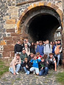 Die Klassen 8R1 und 8R2 machten sich am 17. September auf den Weg zur Burg Münzenberg. Bei bestem Wanderwetter - der angekündigte Regen blieb glücklicherweise aus - legten die Schülerinnen und Schüler die 7,5 Kilometer mit Freude und erstaunlich viel Schwung zurück. Unterwegs wurde bereits fantasiert, wie es wohl gewesen sein muss, in schwerer Ritterrüstung den Burghügel zu erklimmen.