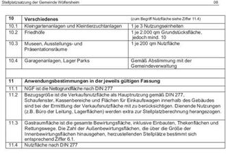 | (5) | Steht die Gesamtzahl in einem offensichtlichen Missverhältnis zum tatsächlichen Bedarf, so kann die sich aus der Einzelermittlung ergebende Zahl der Stellplätze durch den Vorstand der Gemeinde Wölfersheim entsprechend erhöht oder ermäßigt werden. |