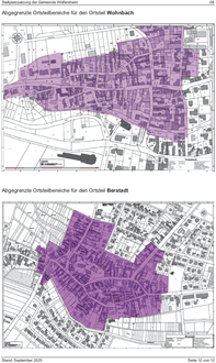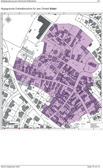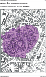 | (2) | Wohnungen in Wohngebäuden und sonstige Gebäude die sich innerhalb der in Anlage 2 zeichnerisch abgegrenzten Ortsteilbereiche befinden, sind von der Herstellungspflicht auf einen Stellplatz je Wohnung begrenzt. |