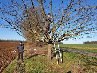 Auf einigen Gemeindegrundstücken haben wir den Bestand an Obstbäumen geschnitten und gepflegt. Das können wir altersbedingt nicht mehr so ohne weiteres erledigen.