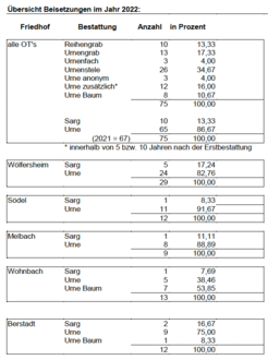 Des Weiteren müssen Plätze bereitgestellt werden, für auswärtige Personen, die bereits vor Änderung der Satzung eine Vorsorgevollmacht mit dem Bestatter abgeschlossen haben. Anzahl der Plätze noch nicht bekannt.