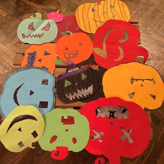 Am Dienstag ging es kreativ beim Basteln zu Halloween weiter. Es wurden gruselige Geister und furchteinflößende Kürbisse zur Dekoration der Fenster gebastelt.