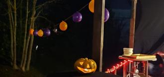 Vorweg musste natürlich stilgerecht dekoriert werden, es wurde Deko aufgestellt, versteckt und aufgehängt. Ein Außenbereich wurde mit Tüchern zugehängt, um eine gruftähnliche Atmosphäre zu erzeugen. Sensoren, Bewegungsmelder und versteckte Solarlichter vervollständigten das Szenario.
