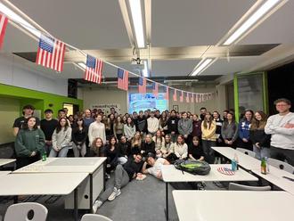 In der Nacht von Dienstag auf Mittwoch fand an der Singbergschule Wölfersheim ein besonderes Event statt: Gemeinsam mit ihren Lehrkräften verbrachten etwa 80 Schülerinnen und Schüler der Englisch-Leistungskurse der Jahrgangsstufen 12 und 13 von Julia Hofmann, Athina Müller, Benjamin Reinold und Julian Schönhals die Nacht in der Schule, um die Ergebnisse der US-Präsidentschaftswahl live zu verfolgen. „Es war schön, dass wir die Veranstaltung jahrgangsübergreifend haben stattfinden lassen, so konnte man sich nochmal mit mehr Leuten austauschen“, berichteten mehrere Schüler.