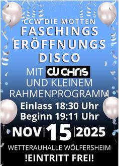 Beim CCW Die Motten beginnt am Samstag, den 15.11.2025, die fünfte Jahreszeit in der Wetterauhalle Wölfersheim!