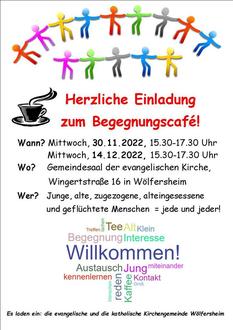 Dienstag, 06. 12. 2022, 15:00 - 17.00 Uhr, Ev. Gemeindehaus, Wingertstraße 16 Info : A. Bich Tel.: 3012 oder G. Kellinger, Tel.: 983479
