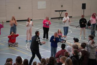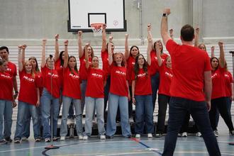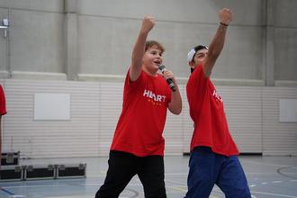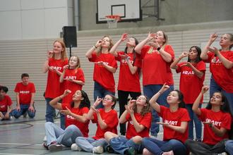 Schon am Freitagmorgen durften sich alle Jahrgangsstufen von der Energie und dem Talent von HEART GLOBAL anstecken lassen. Innerhalb von Minuten sangen alle mehrstimmig „Don´t Stop Believin` - kurze Zeit später stand ein Dancebattle an.
