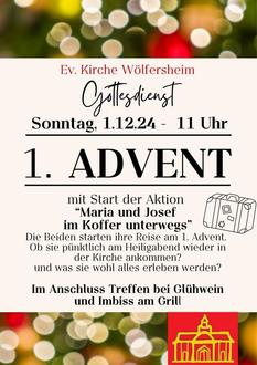| 11.00 Uhr | Wölfersheim - (Pfarrer Stephan) mit Start der Aktion „Maria u. Josef im Koffer unterwegs“ und Einladung zu Glühwein und Imbiss |