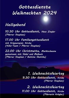 | 11:00 Uhr | Melbach (Pfarrer Stephan) |