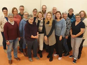 14 Ehrenamtliche und zwei Pfarrer bilden den Kirchenvorstand (von links) Susanne Wöhrle, Melanie Frank, Miriam Kammer-Lang, Jörg Fröhlich, Marina Niehaus, Ines Dauernheim, Petra Claas, Karin Walther, Sven Rathmann, Liv-Malin Schwartau, Hermann-Ullrich Pfeuffer, Kim Ladner, Ingrid Marloff-Kunkel, Astrid Möller-Seeling, Sandra Fritsch und Nadine Pisulla. (Foto: Ursula Seeger)