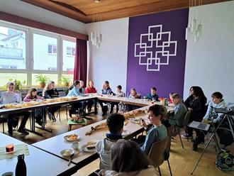 Die Friedensglocken läuten zu Beginn des Begegnungscafés, das alle zwei Wochen in Wölfersheim stattfindet.