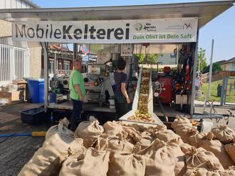 Die Äpfel wurden auch mit dieser Presse gleich zu Saft verarbeitet.
