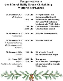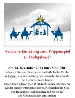 | 15:30 Uhr | Wortgottesdienst mit Krippenspiel in Echzell |