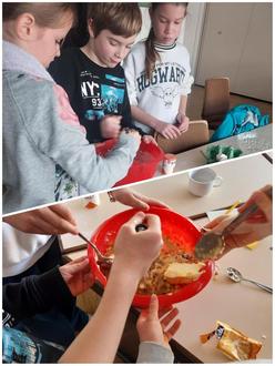 Im Kindergottesdienst am 2. Advent wurde ein Bibelkuchen gebacken. Dazu haben die Kinder die einzelnen Zutaten in der Bibel suchen müssen, um herauszufinden, was sie alles für den Kuchen brauchen. Dabei war der ein oder andere ganz schön überrascht, dass tatsächlich in der Bibel von Butter, Zimt, Mandeln, Mehl und weiteren Zutaten die Rede ist. Zum Schluss durfte jeder ein Stück vom frischgebacken Kuchen mit nach Hause nehmen.