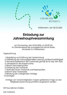 Unsere Jahreshauptversammlung findet am 24.03.2026 um 20:00 Uhr im Gemeindesaal der evangelischen Kirchengemeinde Södel, Kirchplatz 5 statt.