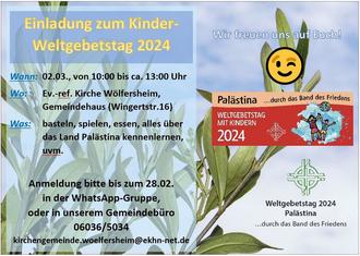 Herzliche Einladung zum Gottesdienst zum Weltgebetstag am Freitag, 1. März 2024 um 18 Uhr in Wölfersheim, Gemeindehaus.