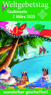 Dieses Jahr entführt uns der Weltgebetstag auf die Cookinseln, eine Inselgruppe aus 15 Inseln weit verstreut im Südpazifik. In dem Tropenparadies ist der Tourismus der wichtigste Wirtschaftszweig, gleichzeitig ist es aber bedroht vom ansteigenden Meeresspiegel, Zykolen und Tiefseebergbau.