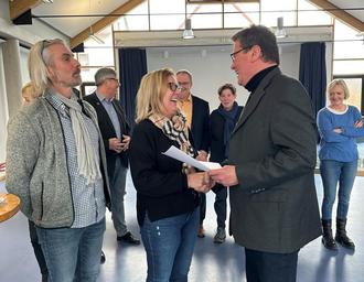 - Ein Stecken-Pferd hatte Tanja Dürschner stellvertretend für Ihr Projekt mitgebracht. Für ihren Reittherapiebetrieb soll es eine Erweiterung für einen Reitplatz und einen Unterstand geben. Der Betrieb "Pferde für Menschen" erhält dafür einen Förderbetrag von 10.128 Euro.