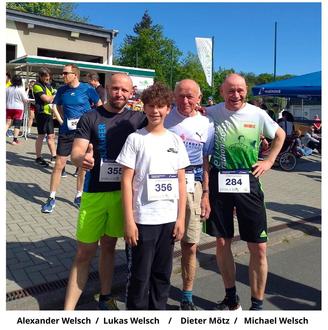 Mit Dieter Mötz, Michael Welsch, Alexander Welsch und Lukas Welsch waren zum ersten mal 4! Generationen bei einem Volkslauf am Start. Passiert ist das ganze beim 4.Mainova Streuobstwiesenlauf in Bad Homburg.Bei herlichen Laufwetter um 18 Grad ging der Volkslauf über 5.26 km durch die Streuobstwiesen und 3 kleinen Steigungen und Blick auf den Feldberg und die Frankfurter City. Mit am Start waren auch die“ Griedelbacher Läufer“ Diese waren angereist aus dem 40 km entfernten Waldsolms. Ältester Teilnehmer und gleichzeitig das Urgestein der“ Griedelbacher Läufer“ war Dieter Mötz mit seinen 84 Jahren. Ünterstützung bekam er von seinem Schwiegersohn Michael Welsch,seinen Enkel Alexander Welsch und seinen Urenkel Lukas Welsch,der seinen ersten Volkslauf machte.Die Laufstrecke schaffte das ganze Team der „Griedelbacher Läufer“sehr gut und die wenigen kleinen Steigungen.konnten problemlos gemeistert werden.In Griedelbach wo die 4! Läufer wohnen,geht es eigentlich nur bergauf und bergab. Das bei den „Griedelbacher Läufer“ so eine Familäre sportliche Leistung förderlich ist,zeigte sich auch in den Laufzeiten.Dieter Mötz kam nach 41.16 Minuten ins Ziel. Michael Welsch hat nach 35.03 Minuten das Ziel erreicht. Alexander Welsch und sein Sohn Lukas Welsch kamen beide gemeinsam in 32.50 Minuten ins Ziel.