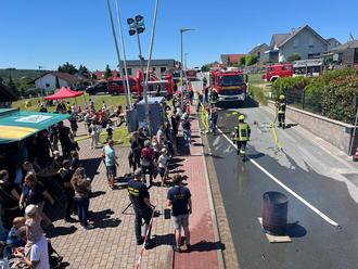 Die Übung der Jugendfeuerwehr, die eine brennende Tonne fachmännisch löschte, war ein Highlight für die Besucher.