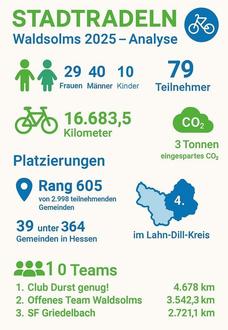 Übrigens haben wir mit unseren gefahrenen Kilometern durchschnittlich 3,44 Kilometer für jeden Einwohner von Waldsolms erradelt!