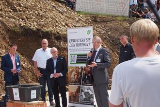 Einer der Höhepunkte am Sonntag war die Grundsteinlegung für das anstehende Ausbauprojekt „Horizonterweiternd“ für die EG-Zentrale und ihre Jugendbildungsstätte in Radevormwald. Hier ist nicht nur die Zentrale der EG und Verwaltung für die rund 50 angeschlossenen Gemeinschaften und Gemeinden, sondern auch eine Jugendbildungsstätte (JBS) mit erlebnispädagogischen Angeboten für Schulklassen, Konfi-Gruppen, Gemeindefreizeiten und Seminare. Jährlich verzeichnet die JBS über 20.000 Übernachtungen. Im nun gestarteten Bauprojekt mit veranschlagten Kosten in Millionenhöhe soll das EG-Zentrum und die Jugendbildungsstätte in mehreren Bauabschnitten erweitert, technisch aktualisiert und modernisiert werden, um auch in Zukunft den Besuchern dort neben einer zeitgemäßen Unterbringung von Jesus Christus und der lebendigen Hoffnung durch ihn zu erzählen.