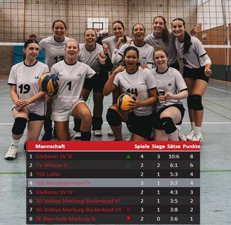 Mit 3 Niederlagen im Tiebreak und einem Sieg ist das Landesliga-Team in die Saison gestartet. Erst bei den Favoriten TV Waldgirmes III 3:2 (25:16, 23:25, 25:20, 16:25, 15:7) und SG Johannesberg 3:2 (20:25, 29:27, 19:25, 25:17, 15:7) dann zuhause leider gegen den Mitaufsteiger TSV Frankenberg 2:3 (25:20, 15:25, 25:20, 19:25, 6:15). Im 2. Spiel des Tages gab es gegen den GSV Gießen den ersten Sieg. 2:1 (25:19, 18:25, 26:24, 25:18). Mit 6 Punkten aus 4 Spielen haben die Damen eine gute Grundlage für den angestrebten Klassenerhalt und den weiteren Verlauf der Saison gelegt. Dies ist besonders bemerkenswert da bisher in jedem Spiel 4-6 Stammkräfte fehlten. Auch wenn das gegen Frankenberg nicht ganz so gut gelungen ist, haben die verbliebenen Spielerinnen diese Ausfälle mit einem unglaublich tollen Kampfgeist ausgeglichen und damit bisher in jedem Spiel mindestens einen Punkt geholt, eine bemerkenswerte Leistung für einen Aufsteiger.