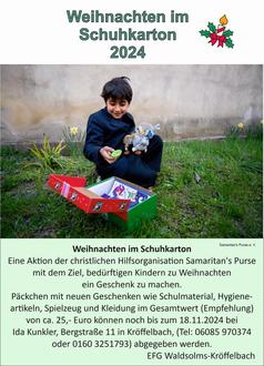 Weihnachten im Schuhkarton - Evangelische Freie Gemeinde (EFG) Waldsolms-Kröffelbach und CVJM Waldsolms