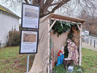 Dabei können Sie sich auch per QR-Code auf den bei der großen Weihnachtskrippe in Kröffelbach ausgestellten Sandmalerei-Bildern hineinnehmen lassen in die künstlerisch erzählte Weihnachtsgeschichte von der Geburt Jesu. Machen Sie gerne Gebrauch davon.