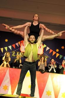 Marie Henrich und Marvin Schwarz beeindrucken in der Frauensitzung der IGBK mit ihrem Akrobaten-Vortrag n
