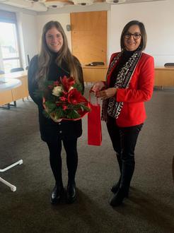 Bürgermeisterin Iris Fleisch bedankte sich bei Alisa Liebel, die zum 31.12.2022 Ihren Dienst bei der Verbandsgemeinde Hagenbach beendet hat und eine neue Aufgabe bei der Kreisverwaltung Germersheim übernimmt. Frau Liebel begann 2017 bei der Verbandsgemeinde Hagenbach Ihre berufliche Laufbahn mit der Ausbildung und war seit 2020 in verschiedenen Fachbereichen, zuletzt in der Personalabteilung tätig. Für Ihre weitere berufliche wie private Zukunft wünschte Frau Fleisch Ihr alles Gute.