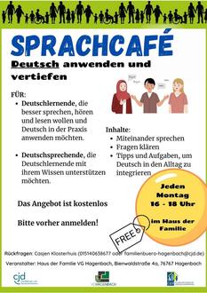 Wir suchen noch Deutschsprechende, die bereit für etwas Konversation mit netten und interessanten Menschen in lockerer Atmosphäre sind. Deutsch anwenden und üben für Deutschlernende und Deutschsprechende, die Lernende unterstützen möchten. Jeden Montag, 16:00 Uhr – 18:00 Uhr im Haus der Familie.