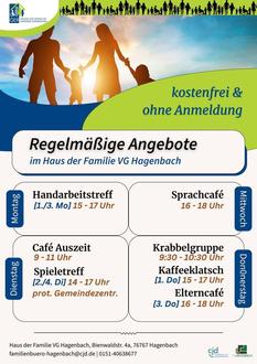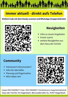 Casjen Klosterhuis, Tel. 01514 / 0638677, Kaja Crocoll, Tel. 01514 / 0638637 oder familienbuero-hagenbach@cjd.de, Haus der Familie, Bienwaldstraße 4a, 76767 Hagenbach.