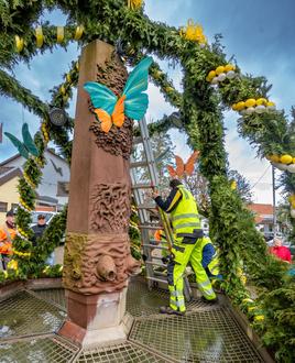 Die Stadt Hagenbach lädt für Karsamstag, dem 08. April 2023, um 14:00 Uhr zur Weihung der Osterkrone mit anschließendem Umtrunk ein. Alle Bürgerinnen und Bürger sind herzlich willkommen. Das Kreativteam, bestehend aus Mitarbeitern des städtischen Bauhofs und engagierten Bürgern, hat sich wieder viel Mühe gemacht. Der festlich geschmückte Brunnen ist eine lieb gewonnene Tradition seit 1995 und ist in der Osterzeit ein echter Blickfang für die Bevölkerung und Hagenbachs Gäste. Der Osterbrunnen symbolisiert die Wichtigkeit des Wassers. Das Grün der Osterzweige, die den Brunnen zieren, steht für die wiedererwachende Natur im Frühling, das Ei ist Sinnbild für Fruchtbarkeit und wiederkehrendes Leben. Zur Veranstaltung richtet Stadtbürgermeister Christian Hutter Grußworte an die Gemeinde, Pfarrer Stephan Petri segnet die Osterkrone. Die Feier wird begleitet vom Rätschen der Messdiener und einem Ostergedicht, vorgetragen von Doris Schlechta. Anschließend sorgt die Stadt für eine kleine Bewirtung und lädt zum gemütlichen Beisammensein ein.
