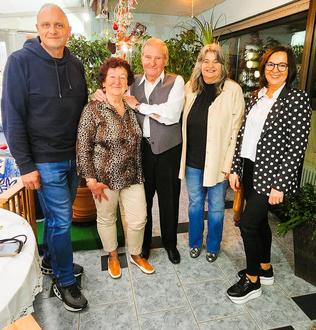 Kreisbeigeordneter C. Völker, das Jubelpaar B. und M. Mayer, Ortsbürgermeisterin S. Gerhart, Bürgermeisterin I. Fleisch