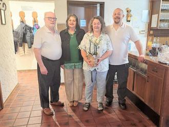 Ortsbürgermeisterin S. Gerhart gratuliert Erwin, Ursula und Christian Schwarz zum 40-jährigen Jubiläum