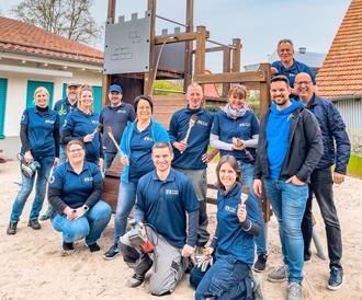 Im Rahmen des VR nachhaltig-aktiv-Tages haben am vergangenen Samstag 15 Mitarbeiter*innen der VR-Bank Südpfalz die Spielgeräte in der Außenanlage des Kindergarten St. Michael auf Vordermann gebracht. Unter der Aufsicht von Bauhofleiter Rolf Oberfrank, Beigeordnetem David Betsch und Initiator Hans Kirsch von der VR-Bank Südpfalz wurden die Spielgeräte zunächst abgeschliffen, gereinigt und im Anschluss gestrichen. Die VR-Bank Südpfalz unterstütze die Aktion nicht nur mit der notwendigen Arbeitskraft, sondern auch mit einer Spende für das Material in Höhe von 500 €. Stadtbürgermeister Christian Hutter bedankte sich persönlich bei allen Mitwirkenden für ihr Engagement und die Spende. Der VR nachhaltig-aktiv-Tag fand 2023 bereits zum 13. Mal statt. Ehrenamtlich unterstützen die Mitarbeiter*innen außerhalb der Arbeitszeit gemeinnützige Projekte im Geschäftsgebiet. In diesem Jahr engagierten sich über 90 Mitarbeiter*innen in sechs Projekten.