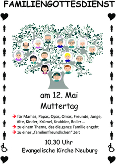 | 10:30 Uhr | Familiengottesdienst zum Muttertag in Neuburg |