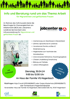 Casjen Klosterhuis, Tel. 0151 / 40638677, Kaja Crocoll, Tel. 0151 / 40638637 oder familienbuero-hagenbach@cjd.de, Haus der Familie, Bienwaldstraße 4a, 76767 Hagenbach.