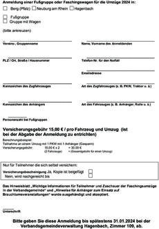 welches wir den Teilnehmern bei der Anmeldung zu den Umzügen aushändigen werden. Damit die heitere