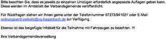 Bitte beachten Sie, dass es jeweils zu einzelnen Umzügen erforderlich angepasste Auflagen geben kann.