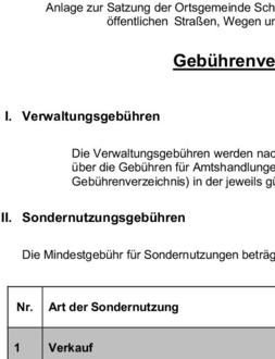 (1) Für erlaubnispflichtige Sondernutzungen werden Gebühren nach dem dieser Satzung beigefügten Gebührenverzeichnis erhoben (Sondernutzungsgebühr). Das Gebührenverzeichnis ist Bestandteil dieser Satzung. Die Gebühr wird nach dem dieser Satzung anliegenden Gebührenverzeichnis erhoben und zwar auch dann, wenn die Sondernutzung ausgeübt wird, ohne dass eine Erlaubnis erteilt wurde.