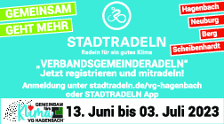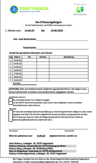 Am kommenden Dienstag beginnt das STADTRADELN in unserer Verbandsgemeinde. Alle Bürgerinnen und Bürger sind herzlich eingeladen in der Zeit vom 13.06.2023 bis 03.07.2023 bei der Radel-Aktion für die Gemeinschaft, die Gesundheit und natürlich das Klima teilzunehmen.In Berg, Neuburg und Scheibenhardt starten wir am Dienstag mit einem gemeinsamen Feierabendradeln, die Hagenbacher Radler sind am Donnerstag zum Mitmachen eingeladen.Insgesamt sind schon über 32 Teams angemeldet. Noch nicht angemeldet? Kein Problem! Bis zum letzten Tag besteht die Möglichkeit sich unter www.stadtradeln.de/vg-hagenbach oder über die STADTRADEL-App zu registrieren.Alle Teilnehmer erfassen ihre zurückgelegten km über die Internetseite des STADTRADELNS unter „mein km-buch“, die STADTRADEL-App oder mit dem beigefügten Erfassungsbogen.