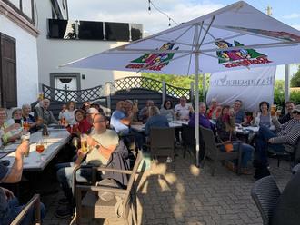Im Biergarten des Bayrischen Hofs trafen alle Gruppen aufeinander. Es entstand eine lebhafte und herzliche Gemeinschaft, wobei auch der sportliche Ehrgeiz untereinander nicht zu kurz kam. Die geradelten Kilometer wurden den jeweiligen Teams zugeschrieben und so kam es, dass wir für die Verbandsgemeinde Hagenbach am ersten Tag schon über 4.500 km insgesamt erradelt haben. Supertoll.